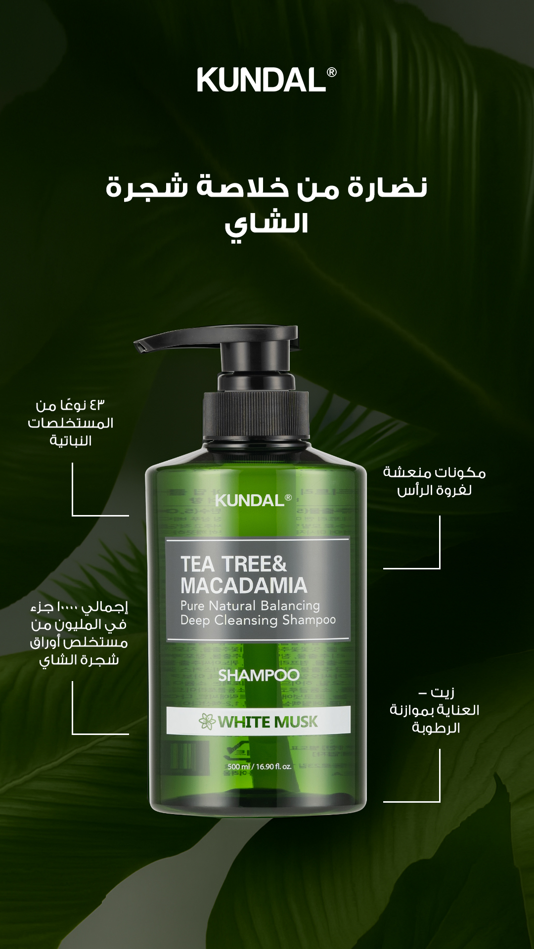 شامبو كوندال بشجرة الشاي والمكاداميا للتنظيف العميق 500 مل – بالمسك الأبيض