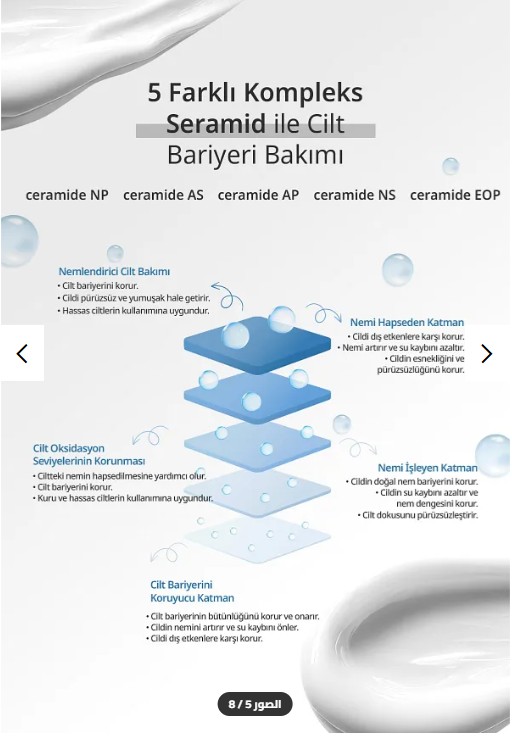 حماية حاجز البشرة: يساعد في حماية حاجز البشرة والأظافر والبشرة باستخدام 5 أنواع مختلفة من السيراميد في محتواه. بفضل محتواه من 6 مستخلصات نباتية مختلفة، يرطب البشرة.