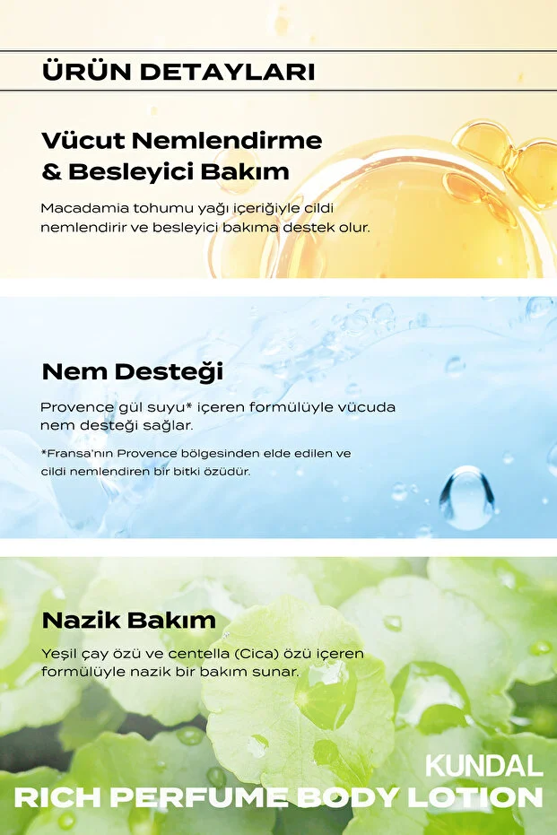 تركيبة مرطّبة فائقة الغنى تجمع بين الجلسرين، زبدة الشيا، والزيوت النباتية الطبيعية مثل زيت الجوجوبا، العنب، المكاديميا، والأفوكادو لتوفير ترطيب عميق يدوم طوال اليوم. يعزّز المنتج نعومة ومرونة البشرة بفضل مزيج متوازن من المرطّبات والمغذّيات، بينما تساعد مستخلصات طبيعية مثل العسل، الكاموميل، الشاي الأخضر، السنتيلا، والرمان على تهدئة البشرة وحمايتها من الجفاف والعوامل الخارجية. يمتاز المنتج بملمس خفيف سريع الامتصاص دون ترك أي طبقة دهنية، مع رائحة عطرية طبيعية منعشة.