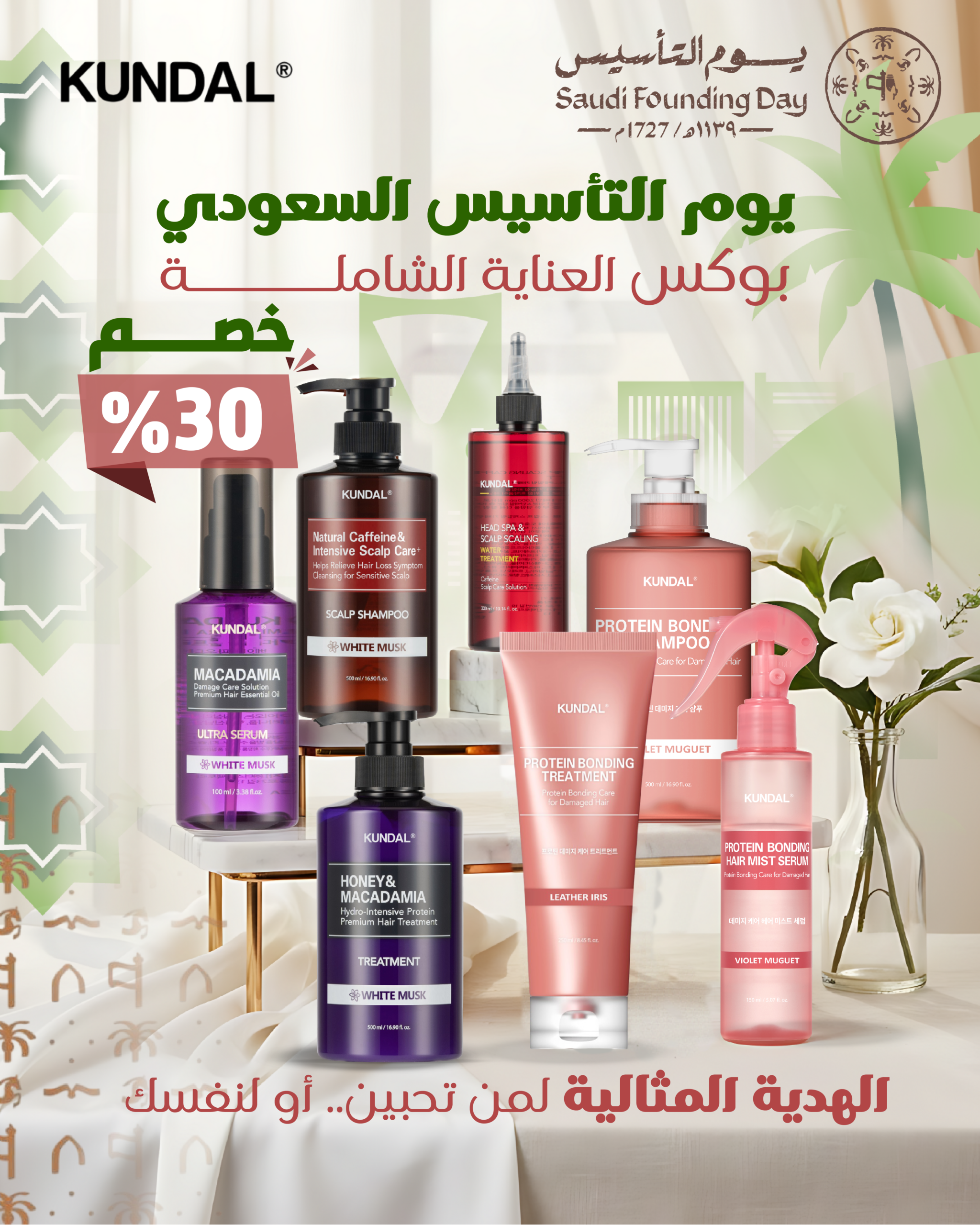 يحتوي البوكس على سبعة منتجات للعناية بالشعر :